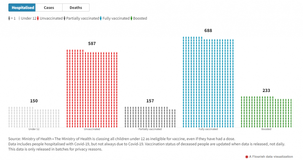 Unvaccinated people made up a high number of the hospitalisations, he said. [AM editor’s note: that is not what the above data from the MOH demonstrates].